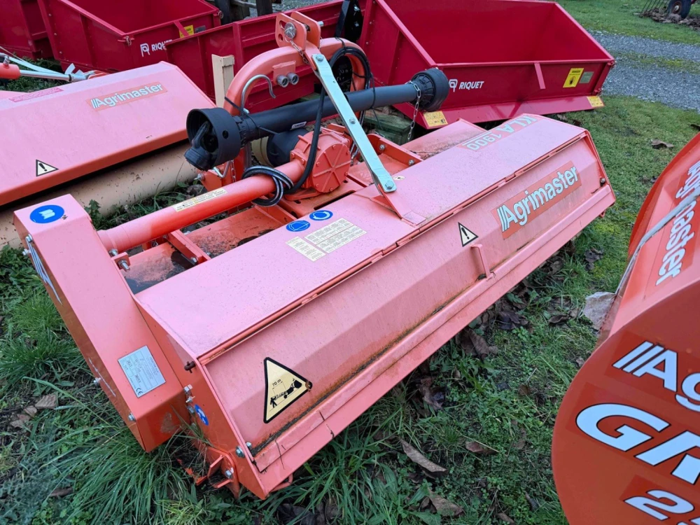 Broyeur Agrimaster KLA1900, largeur de travail 1m90, déport hydraulique, marteaux, capot ouvrant, rouleau, 385kg