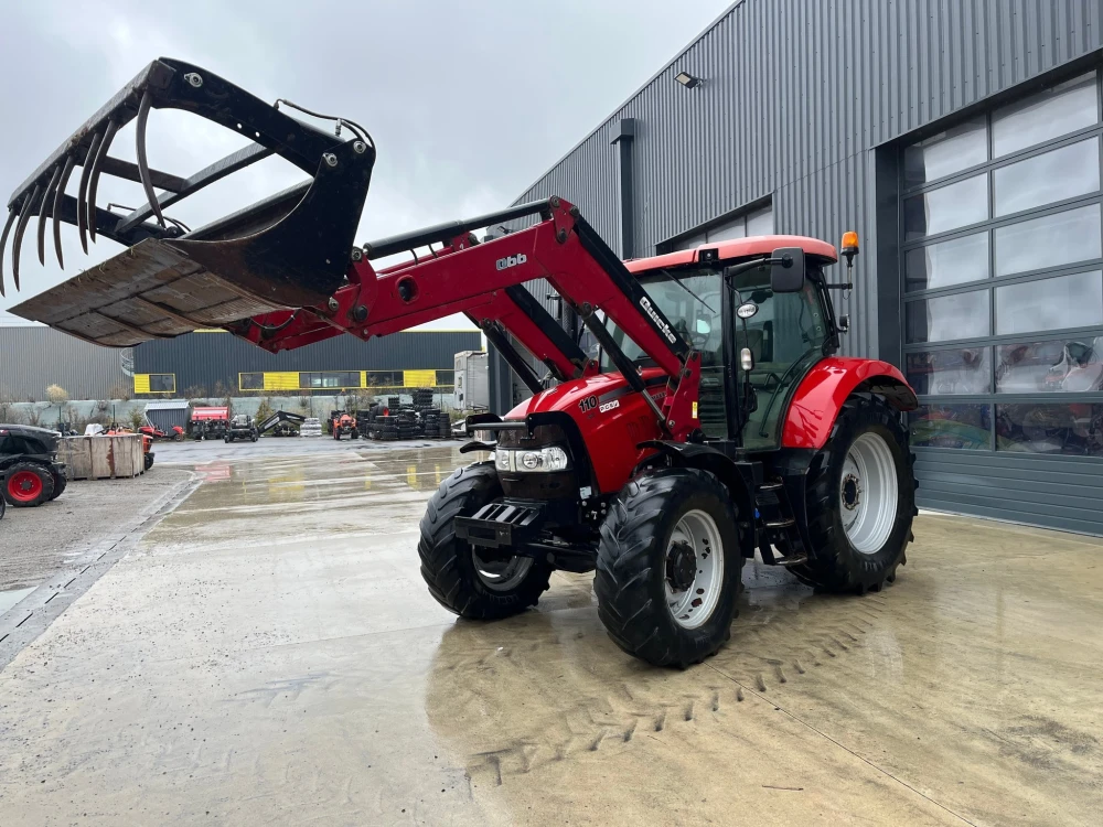 Tracteur CASE IH MAXXUM CVX 110 - de 2015 - 8350 heures prévisionnelles - pont avant et cabine suspendus - sans relevage avant - transmission variation continue - 4DE hydraulique arrière - climatisation automatique - pneus 420/70R28 et 520/70R38 - chargeur QUICKE avec commande électrique - attelage euro - multibenne M+ 230