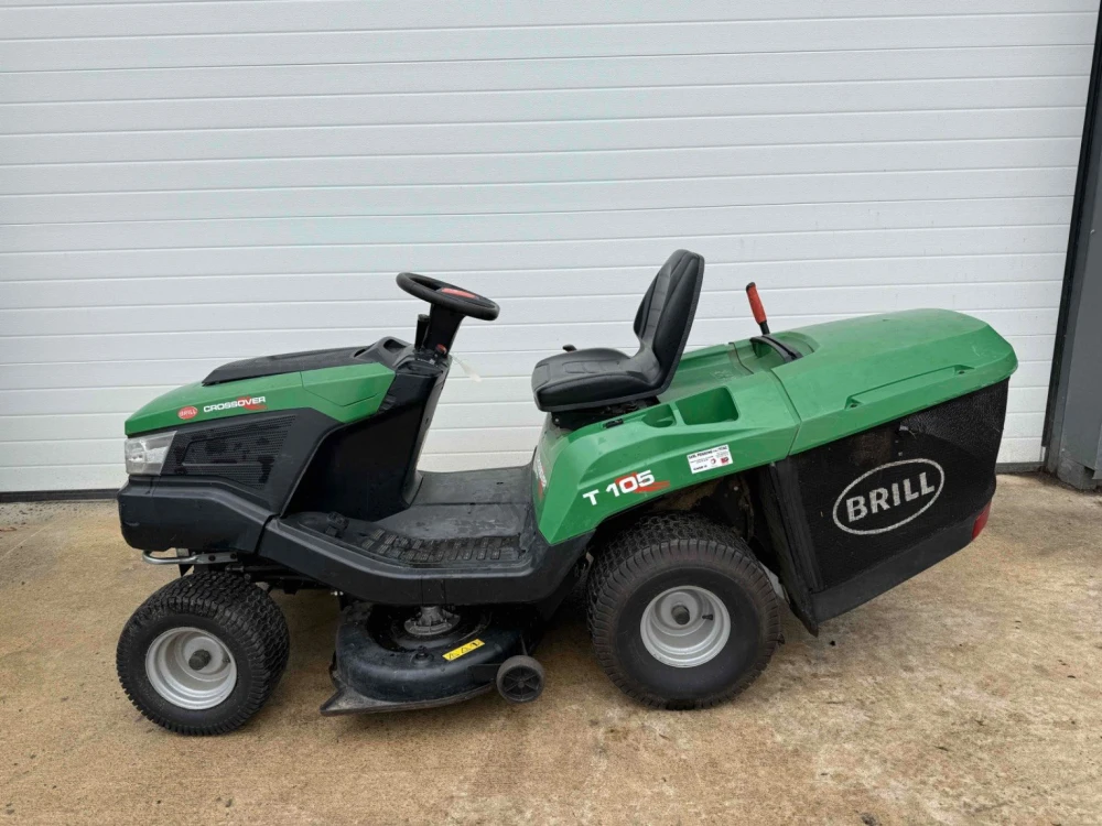 Tondeuse autoportée Brill Crossover T105, moteur briggs et stratton, largeur de coupe 102cm, bac de ramassage, embrayage électromagnétique.